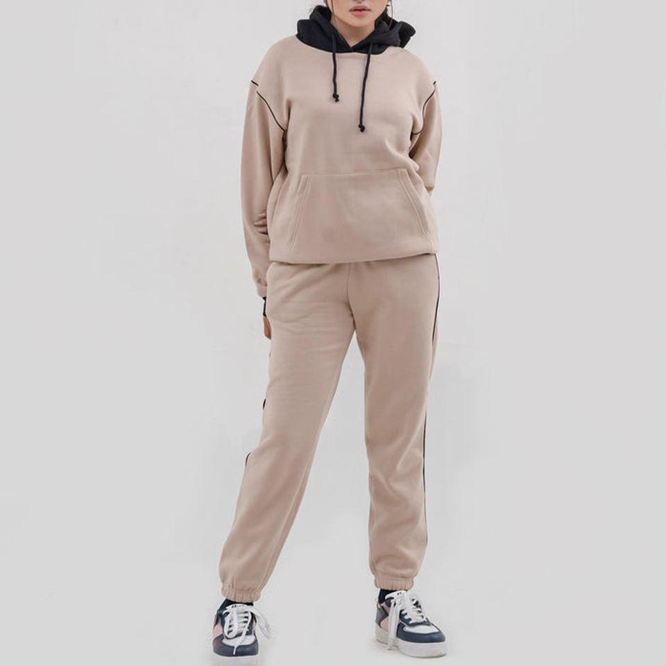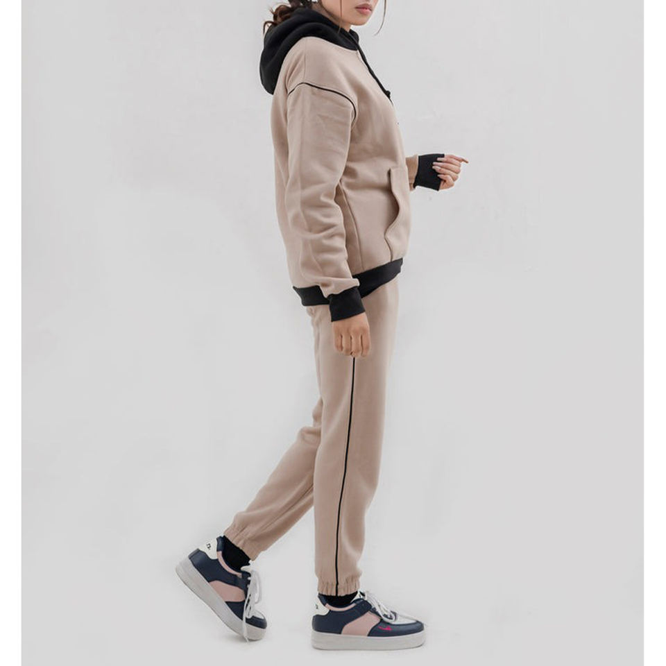 Nombre del producto:Chándal con capucha pullover para mujer Beig negro