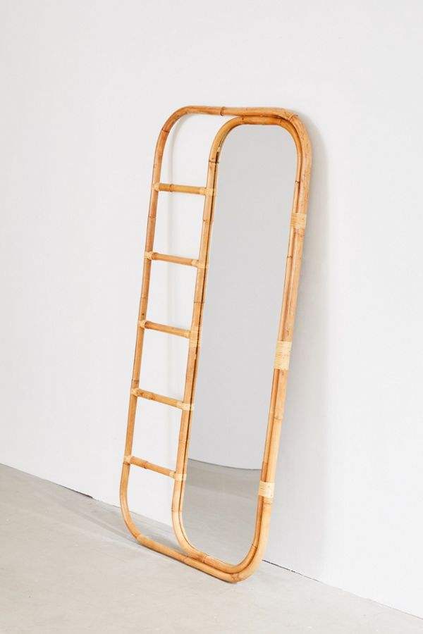 Espejo de ratán de longitud completa con toallero, hecho a mano desde Vietnam