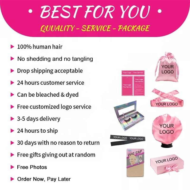 Empaquetamos el cabello con bolsas de satén, bolsas de plástico de aspecto bonito, plástico transparente