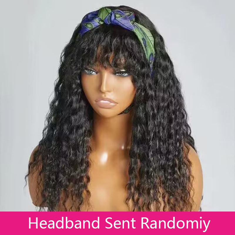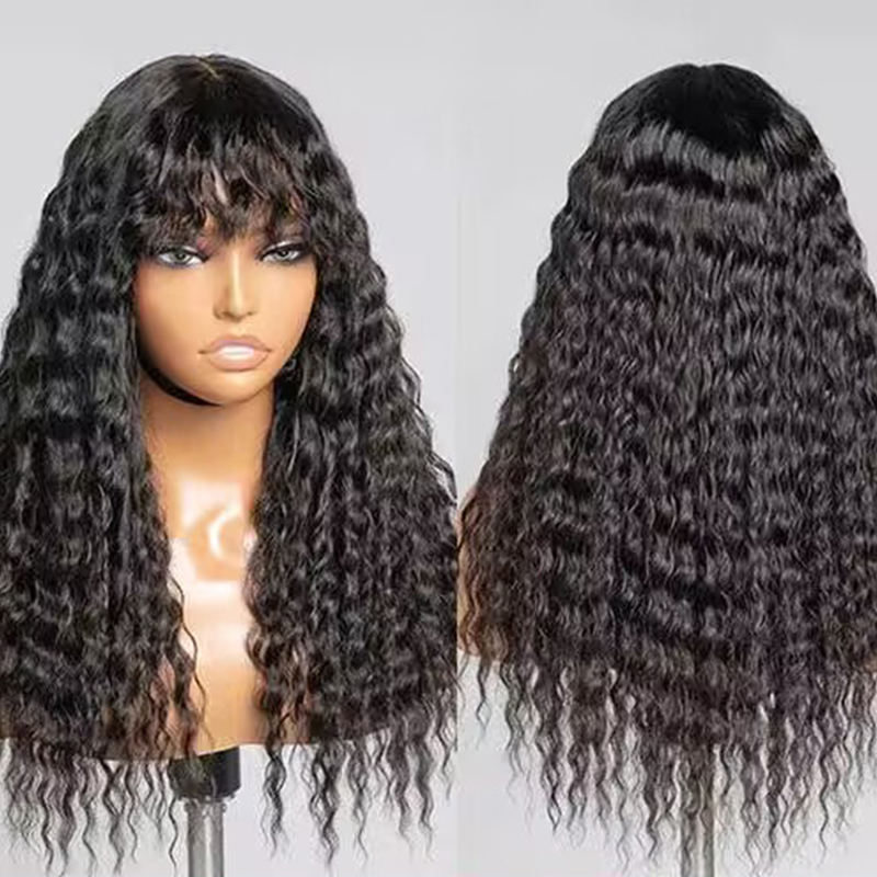 Peluca de Cabello Humano Remy Brasileño 100% Virgen con Flequillo, Sin Pegamento, Sin Encaje, Hecha a Máquina, con Cutícula Alineada