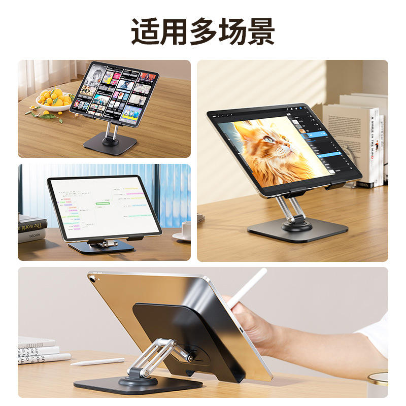 Soporte para tableta de 360 grados de Metal completo, aleación de aluminio, almohadilla plegable gruesa, escritorio giratorio ajustable