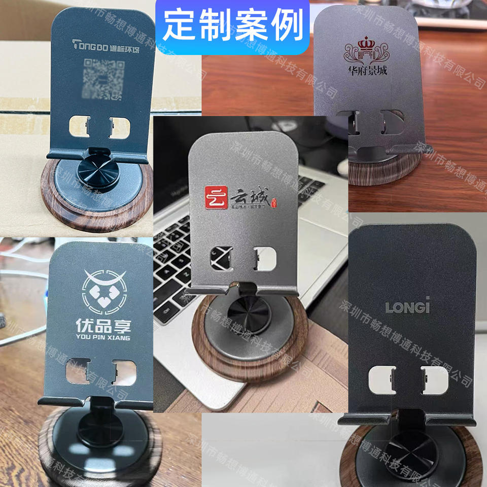 Patrón de texto giratorio de metal completo Soporte de teléfono de escritorio de grano de madera de nogal negro Regalo corporativo