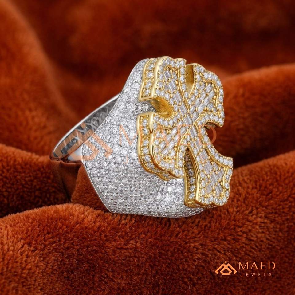 Anillo Cuadrado de Moissanita y Diamantes de Laboratorio, Oro de 18k, con Incrustaciones de Piedras Púrpuras Brillantes, para Cantantes de Hip Hop y Campeones