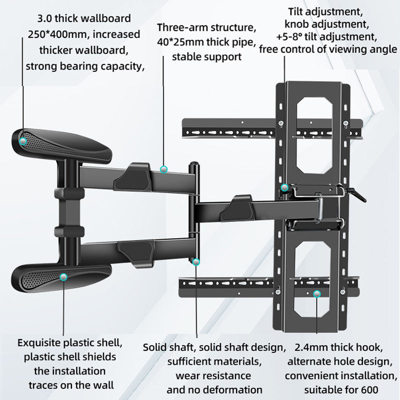 Soporte de pared para TV LED de movimiento completo de 40 "-80", estante retráctil para muebles de TV, soporte Lcd, soporte de brazos oscilantes, soporte para PC VESA 600x500mm DY4080