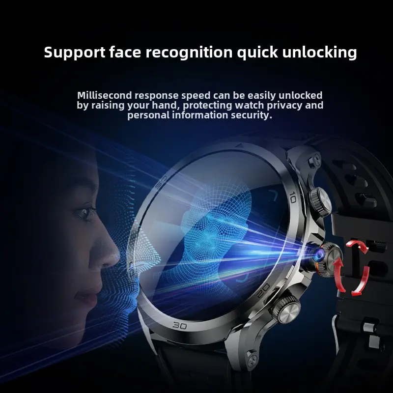 Cronógrafo, brújula, Termómetro, Calendario, Reloj despertador, Control remoto, Cuenta atrás, Noctilucentes, Rastreador de sueño, Medición de velocidad, seguimiento de forma, Podómetro, Recordatorio de llamada, Respuesta telefónica, Mensaje emergente, Seguimiento del estado de ánimo, Recordatorio de mensajes, Marcar llamada, Altímetro, Monitor de ritmo cardíaco, Medida de humedad, Control de gestos, Navegacion GPS, El pago, Seguimiento de la actividad, Notificaciones de Medios sociales, Grabación de Audio, Rastreador de calorías, Llamada de voz, Acelerómetro, Monitor de respiración, Rastreador de distancia, Correo electrónico, Rastreador multideporte, Reproductor DE MÚSICA, Recordatorio sedentario, Botón SOS, Videollamada, Gestión menstrual, Seguimiento del embarazo, Asistente de voz AI, Hora mundial, Calculadoras, Música interactiva, Posicionamiento, Jugando el Corán, Recordatorio de oración, Dirección QiblaFunción