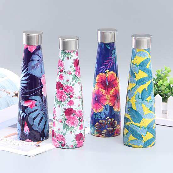 Botella de agua con diseño impreso completo, popular para agua fría y caliente, 450 ml, 15 oz, OEM, botella de acero inoxidable, venta al por mayor, libre de BPA