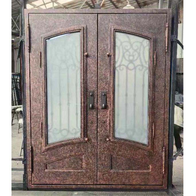 Pelado de clima de radio completo, puertas de entrada exterior doble de hierro forjado selladas, rotura térmica