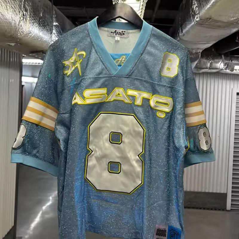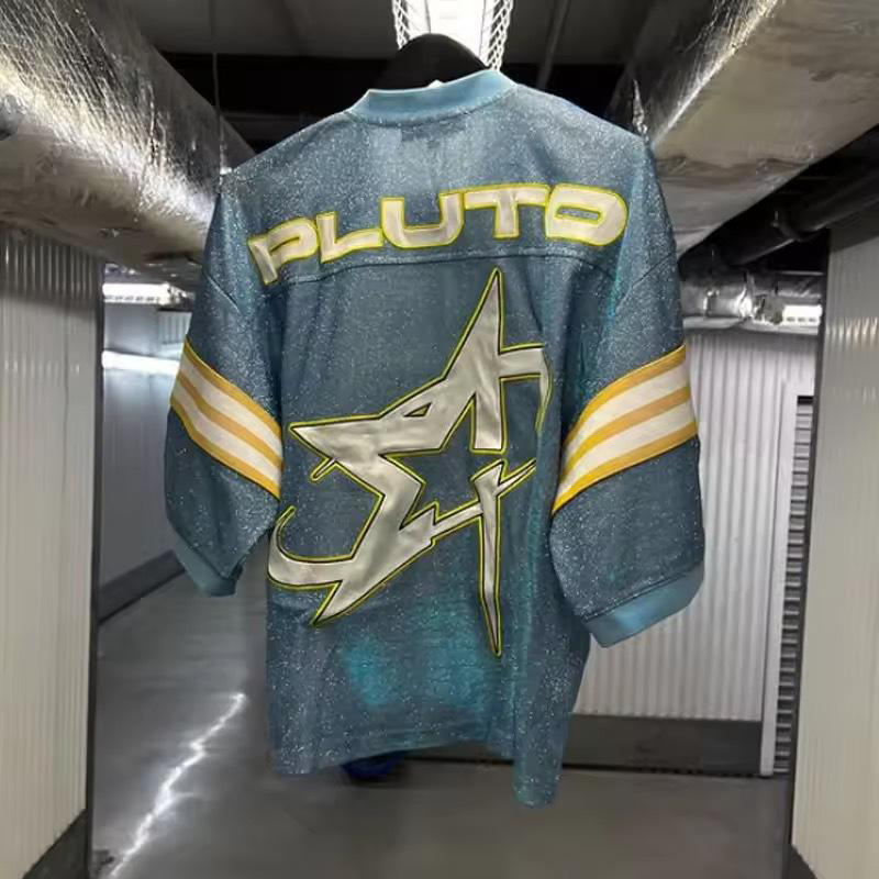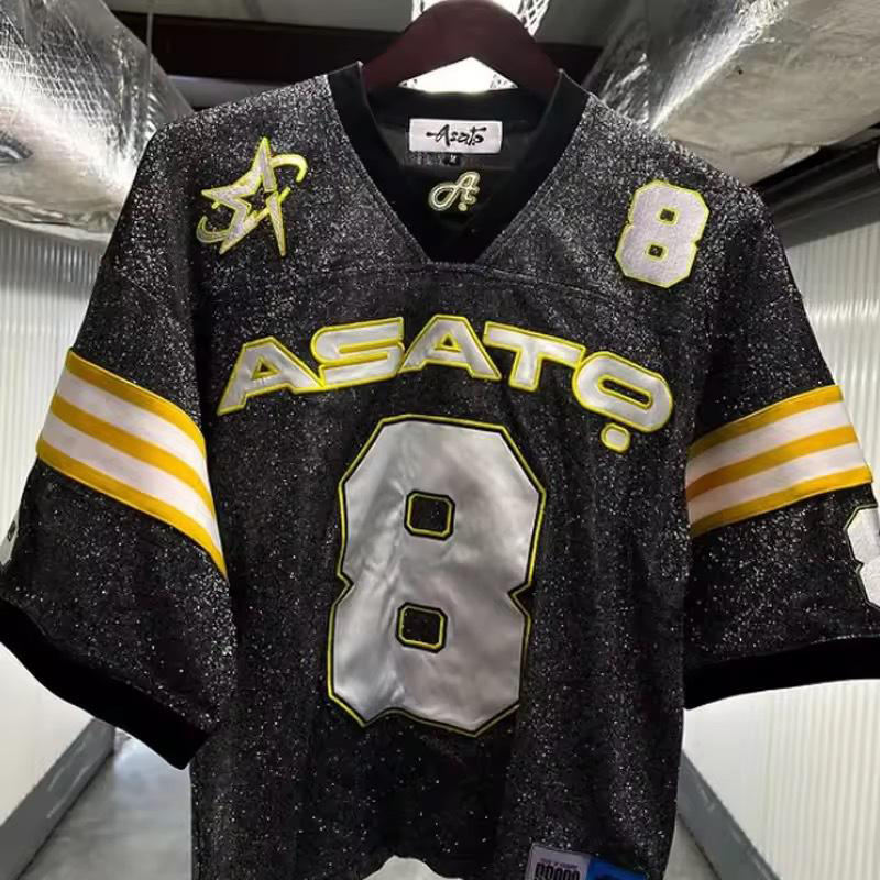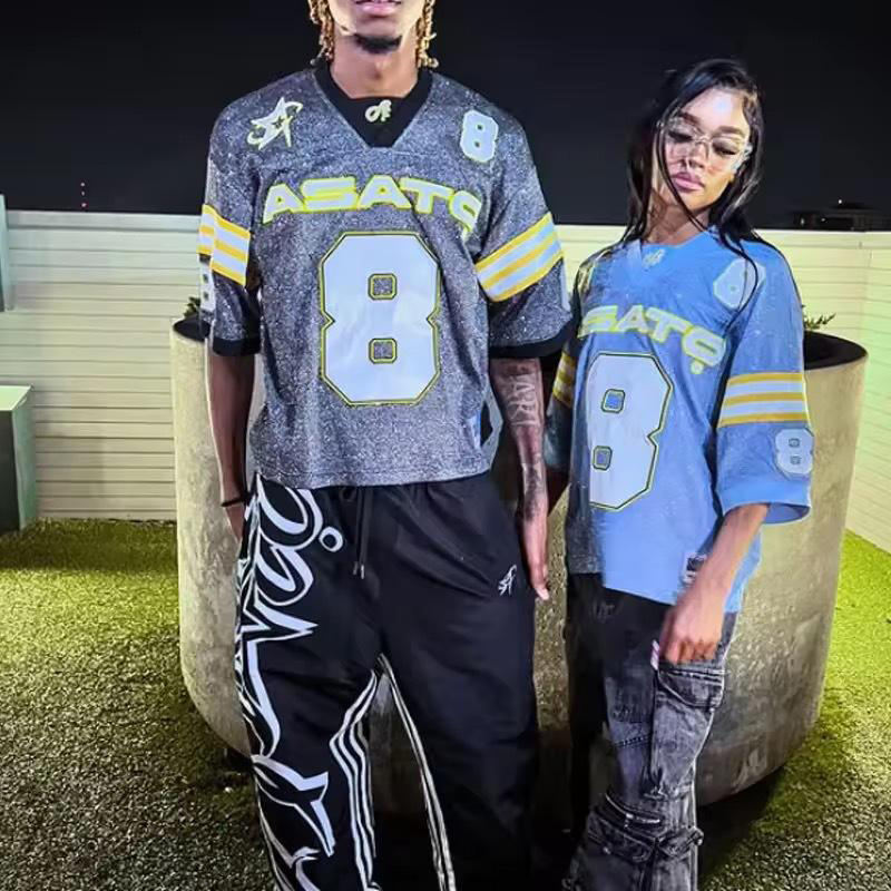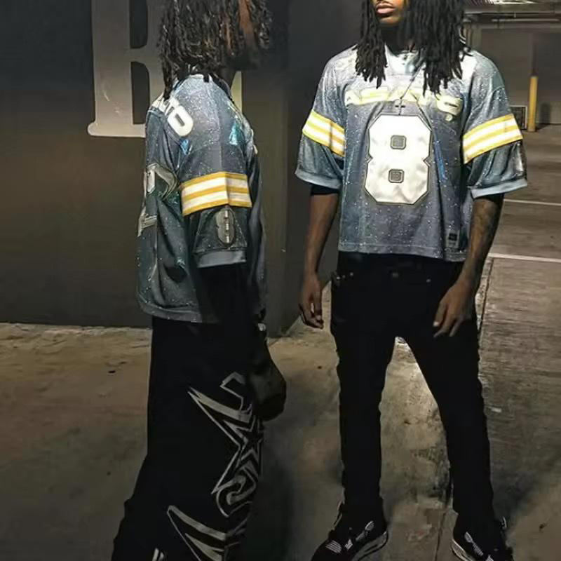 Camiseta de Manga Corta con Pedrería Completa, Pedidos al por Mayor, Jerseys a Rayas, Ropa Urbana Unisex, Jersey con Pedrería, Diseño de Marca, Estilo Hip Hop