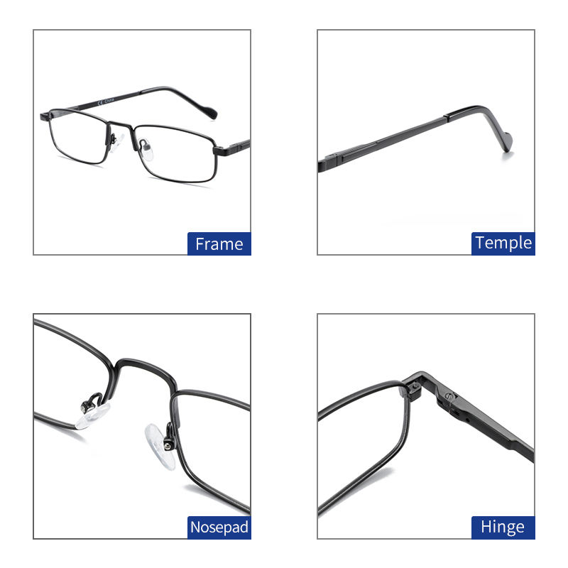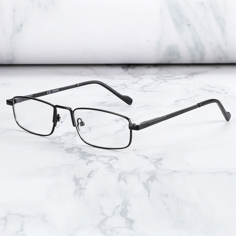 Montura completa y forma de aleación cuadrada, lentes de resina, Marcos ópticos de metal para hombres
