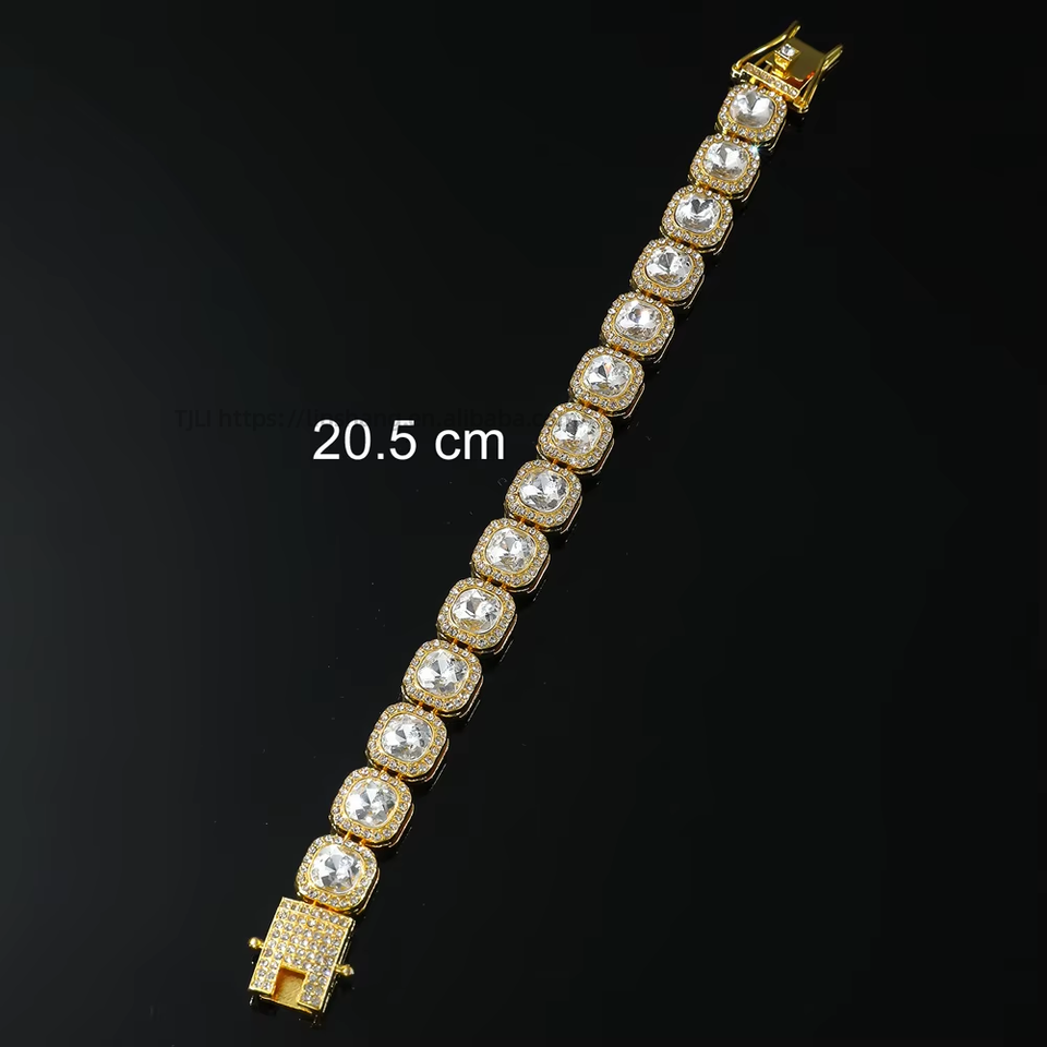 Pulsera Hip Hop de Cadena de Eslabones Cuadrados con Incrustaciones de Diamantes de Imitación, Estilo Cubano, para Hombre, Moda Tanjing, Verano