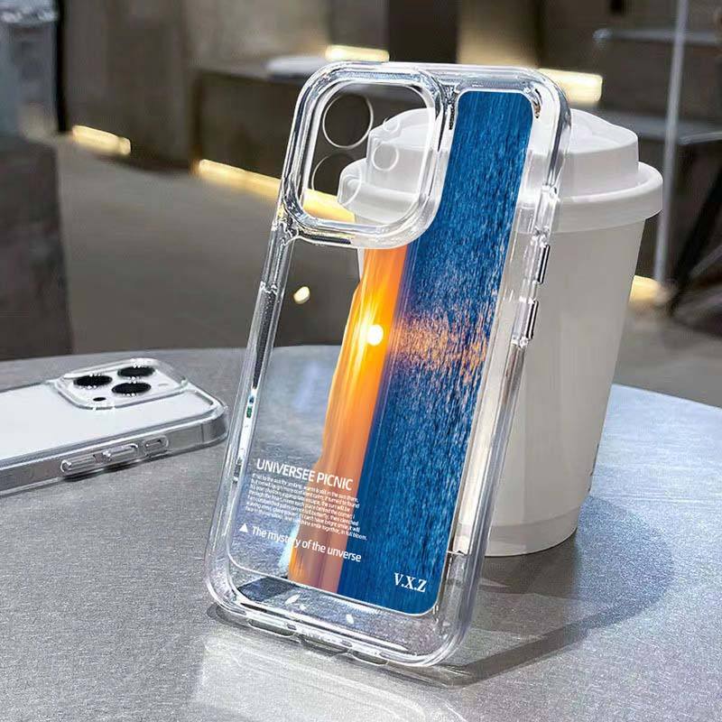 Funda de teléfono móvil TPU espacial a prueba de golpes con estampado de puesta de sol de mar de pantalla completa para Iphone 8 X Xr Xs 11 12 13 14 15 16 17 Pro Max