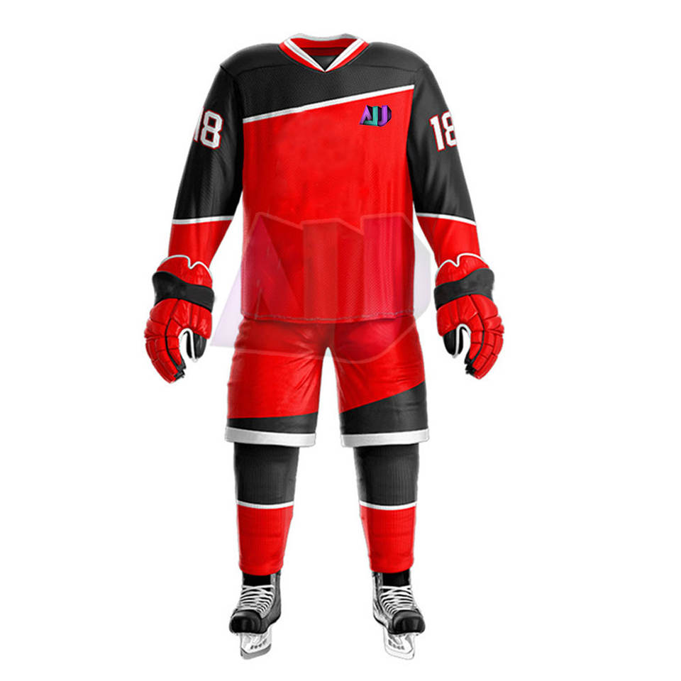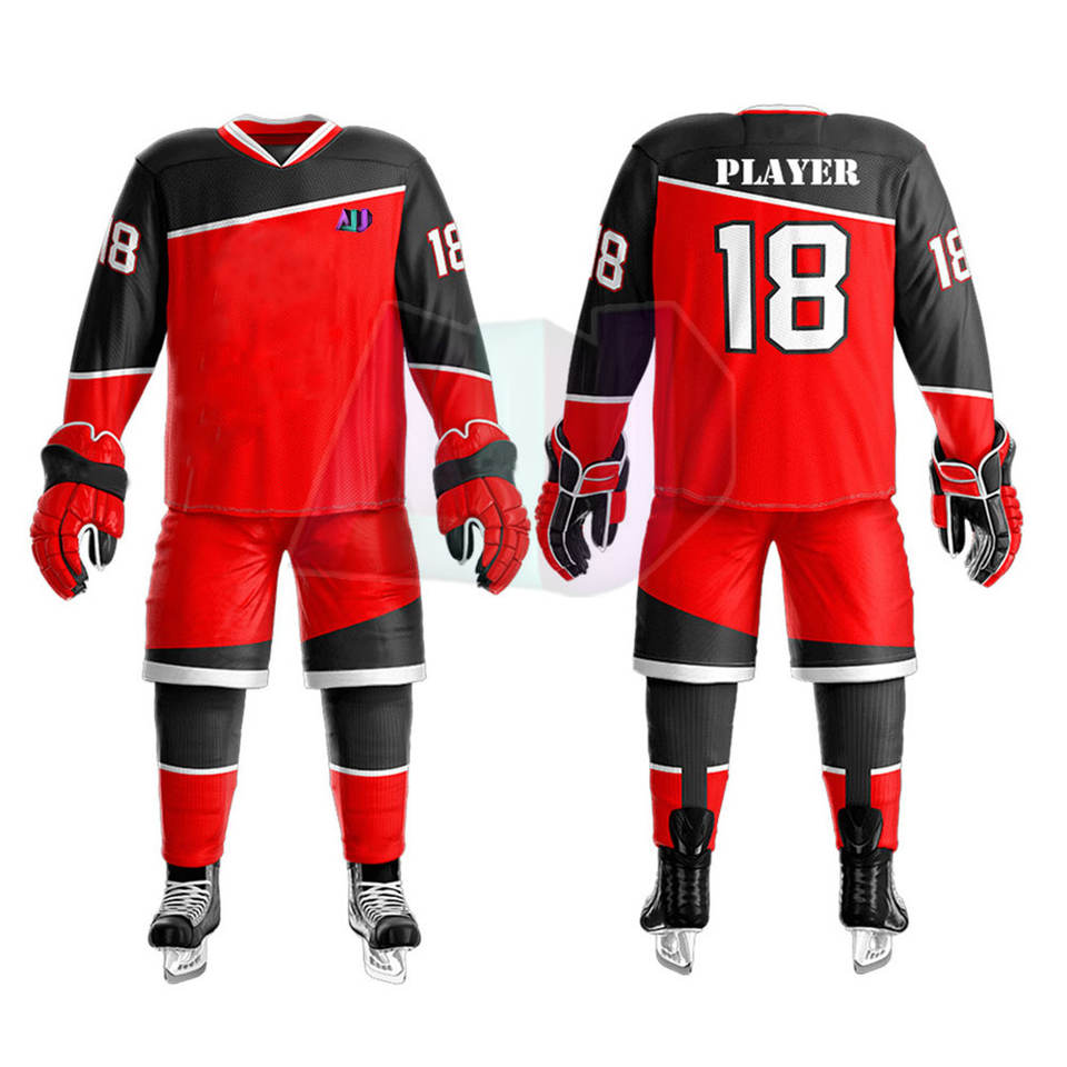 Uniforme Completo de Hockey sobre Hielo con Número y Nombre Personalizados, 100% Poliéster Transpirable que Absorbe la Humedad para Equipos de Adultos y Escuelas