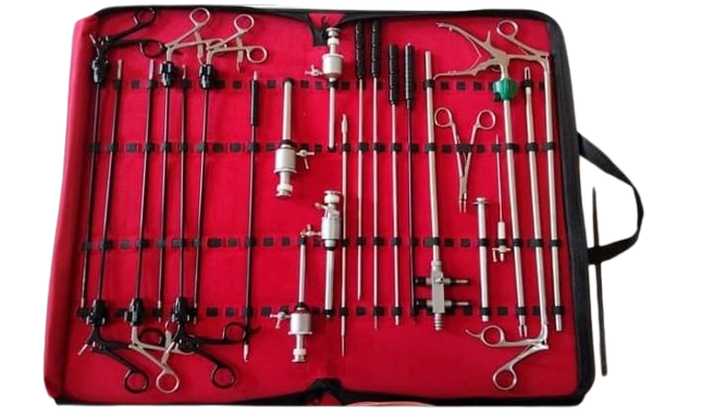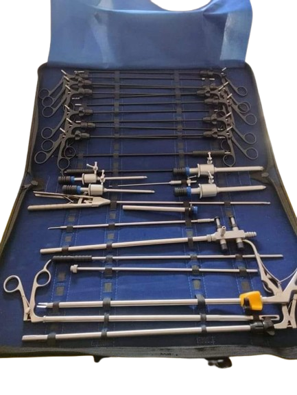 Kit Completo de Instrumentos Quirúrgicos Laparoscópicos con Trócares, Pinzas, Portaagujas y Tijeras, Kit Premium de ORTHO GENIX