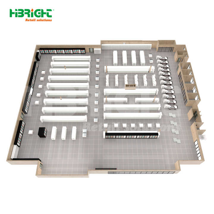 Equipo completo para supermercado: Estanterías góndola, congelador con puerta de vidrio y solución de cámara frigorífica