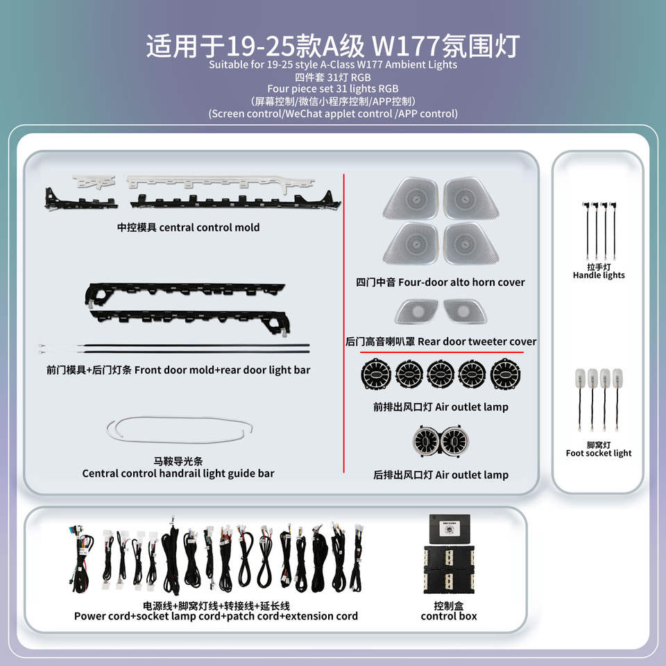 Kit Completo de Luces Ambientales W177, Luces LED Decorativas para el Interior del Automóvil, Luces Ambientales C118 para Mercedes Benz Clase A W177 CLA C118