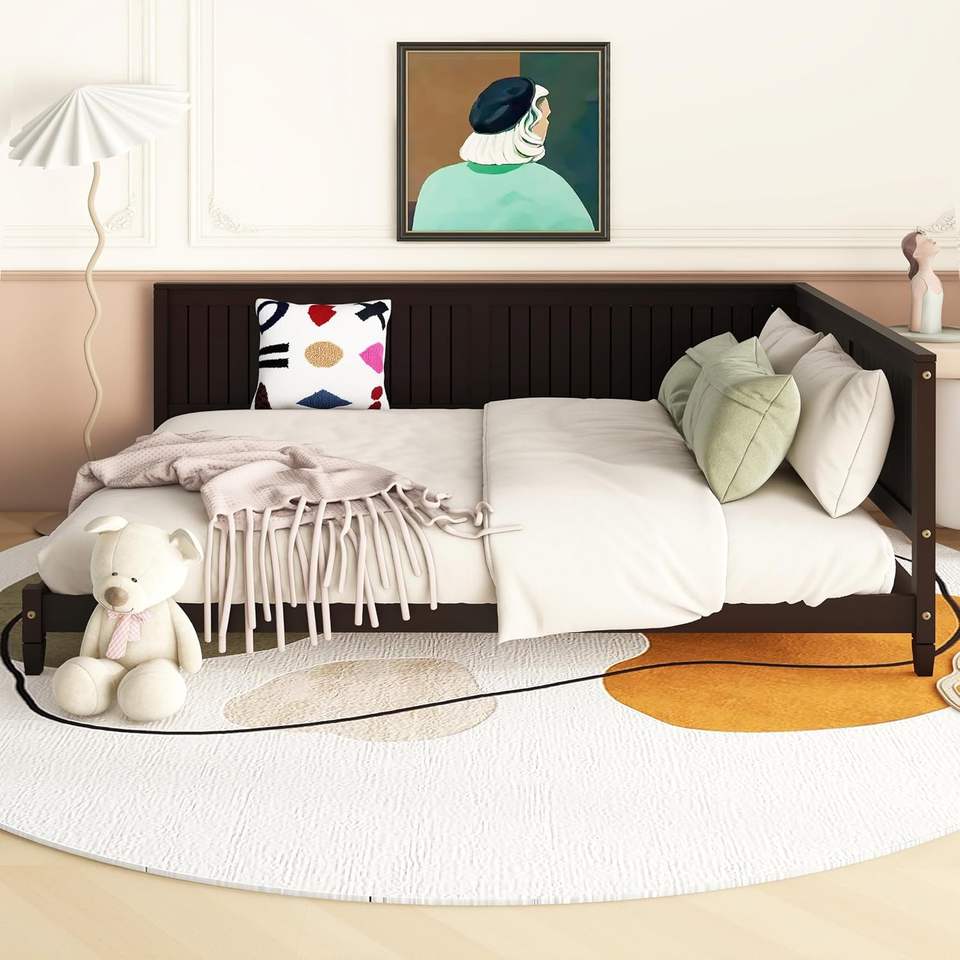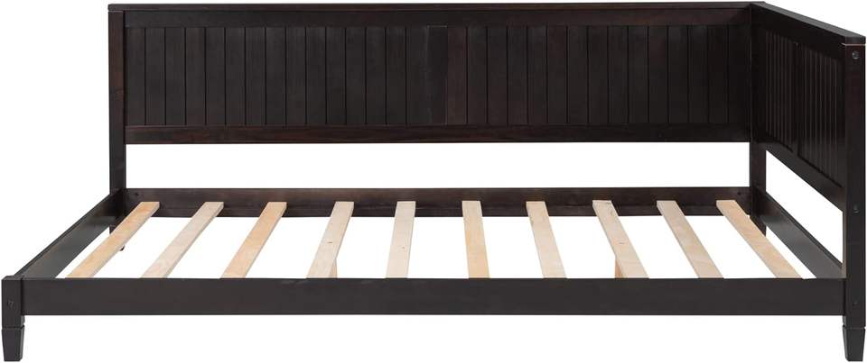Estructura de cama de día de tamaño completo con respaldo, sofá cama de tamaño completo de madera con soporte de listón para niños y adolescentes