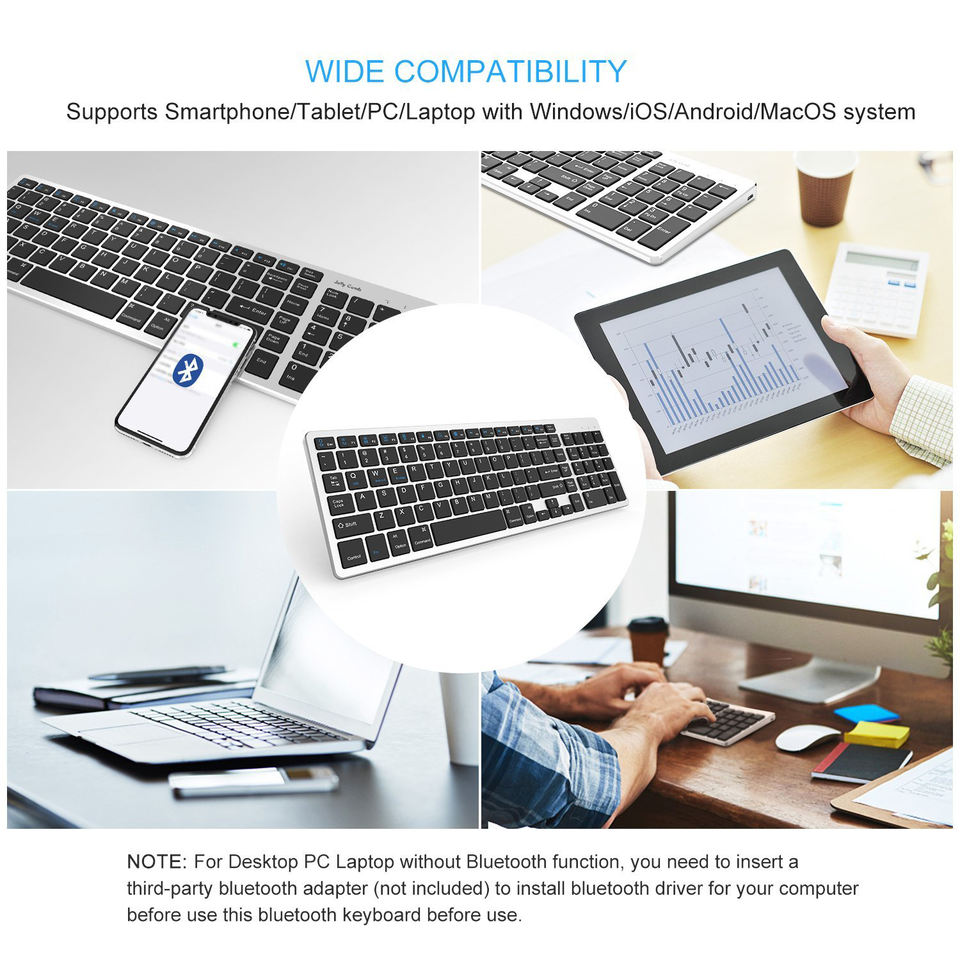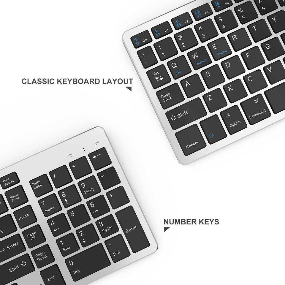 Teclado inalámbrico Bluetooth recargable, diseño de tamaño completo con teclado numérico para iPad MacBook Air/Pro iMac
