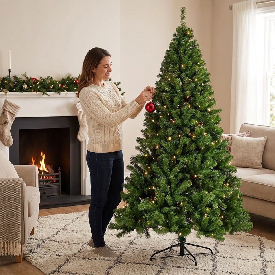 Árbol de Navidad de PVC de tamaño completo con diseño clásico de punta, árbol de Navidad grande para decoración de hoteles y centros comerciales.