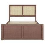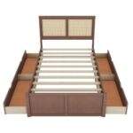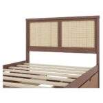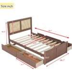 Cama de Ratán de Tamaño Completo con 4 Cajones de Almacenamiento, Estructura de Madera Maciza, Cabecera de Ratán Tejido Natural, Cama con Plataforma para Dormitorio