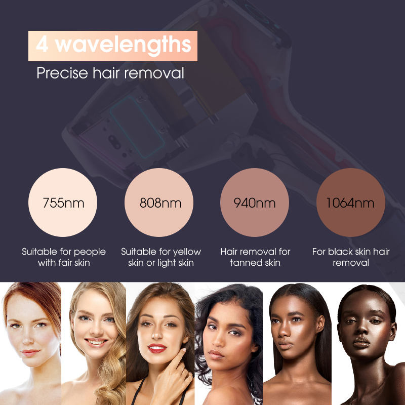 4 longitudes de onda opcionales (755nm+808nm+940nm+1064nm)