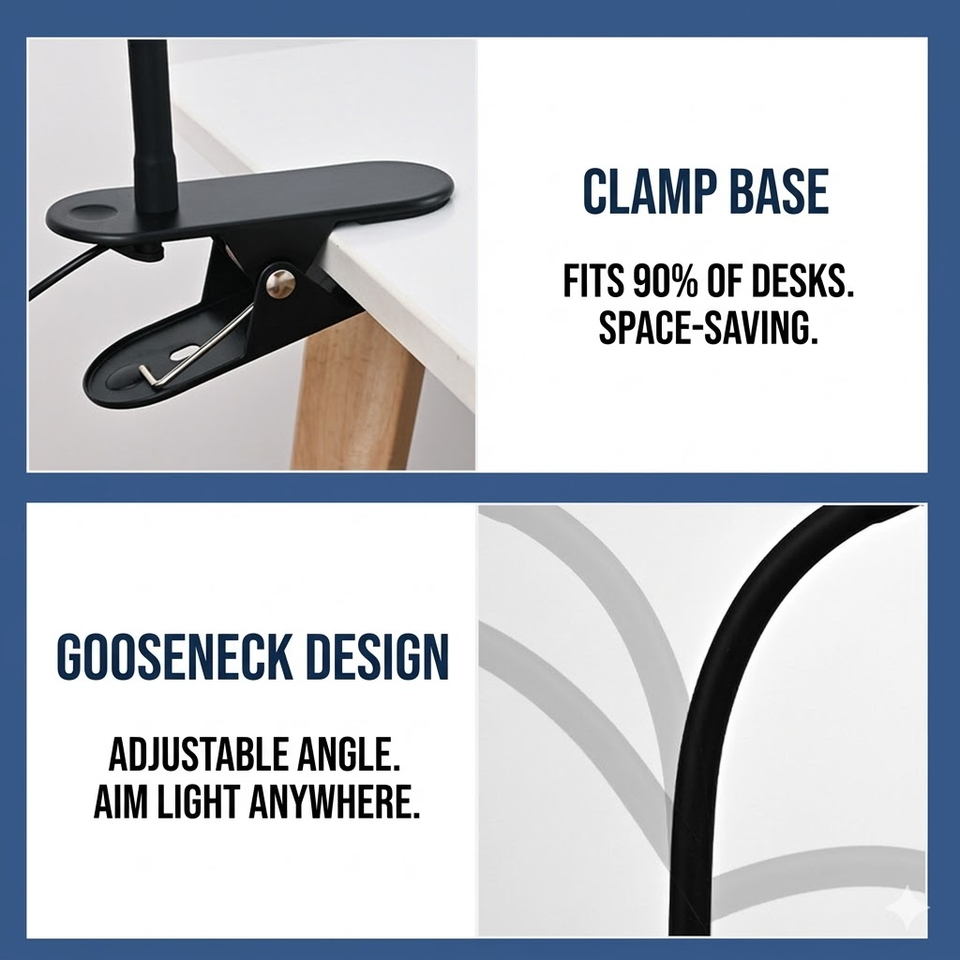 Lámpara de Escritorio LED de Espectro Completo, Moderna y Sencilla, con Protección Ocular, Luz de Lectura con Clip, Cuello de Cisne Flexible, para Oficina, Estudio, Arquitectura