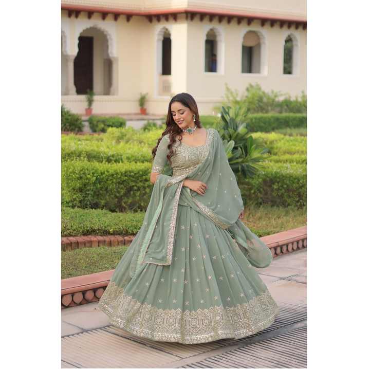 Lehenga Choli de Georgette Sintética Completamente Cosido con Lentejuelas, Ropa India y Pakistaní, Lehenga Choli para Fiestas