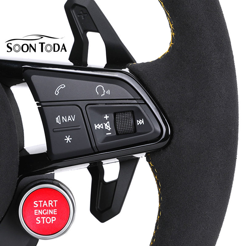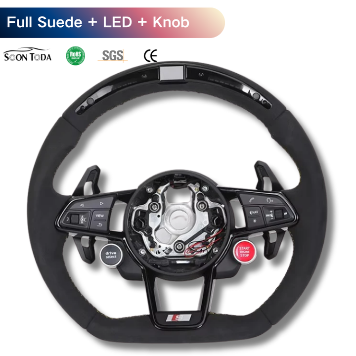 Volante Deportivo de Gamuza Completa con LED y Punta Magnética de Dos Botones para Audi R8 B6 B8 B9 A3 A4 A5 A6 C7 SQ5 Q3 Q5 Q7 RS 8V RS6 RS7 TT