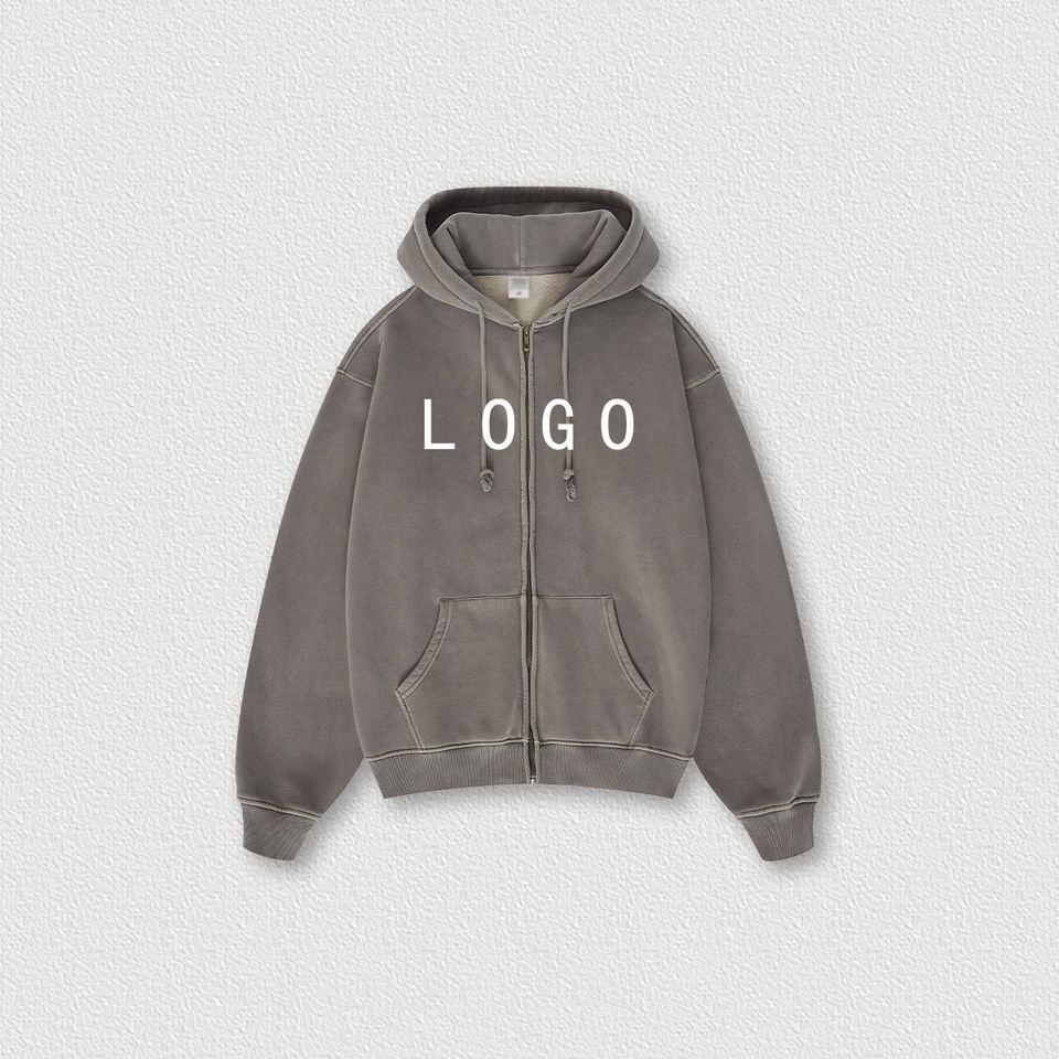Sudaderas con cremallera completa Fleece Custom Logo Vintage Heavy Weight Hoodie French Terry Zip up Hoodie