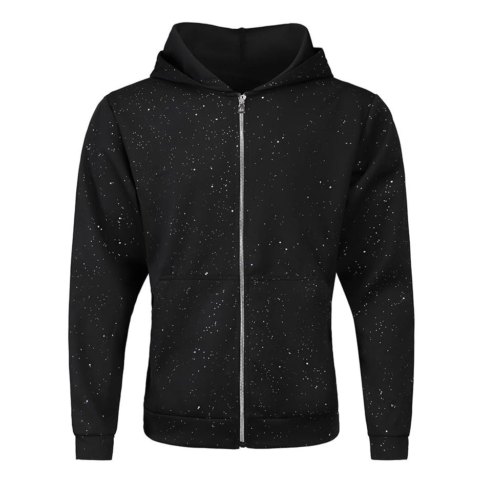 Sudadera con capucha de cremallera completa con pedrería para hombre, de felpa francesa de 500GSM, hombros caídos, estilo oversize vintage, streetwear, al por mayor
