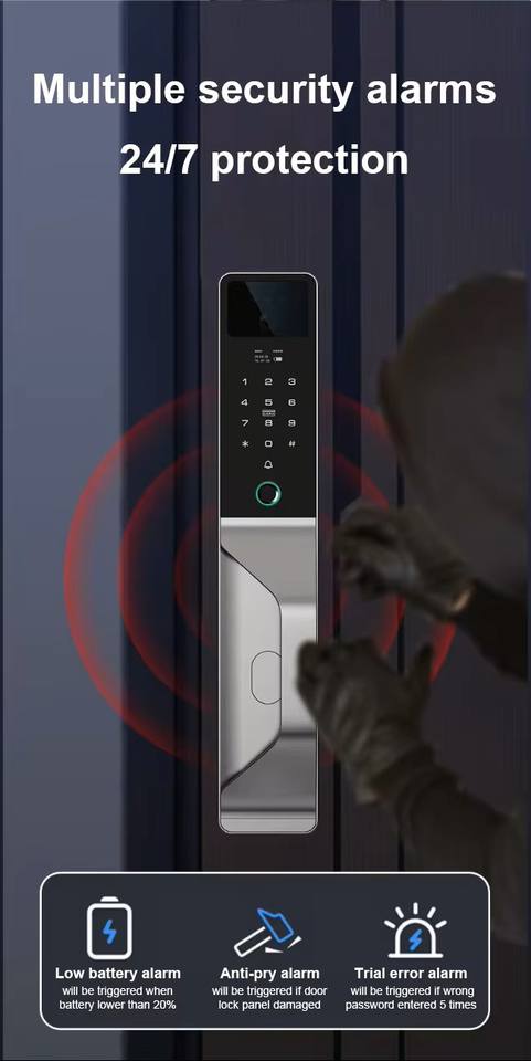 Cerradura de Puerta Principal Totalmente Automática, Cerradura Electrónica Inteligente con Reconocimiento de Huella Dactilar, Palma de la Mano, Contraseña, Tarjeta de Proximidad y Cámara