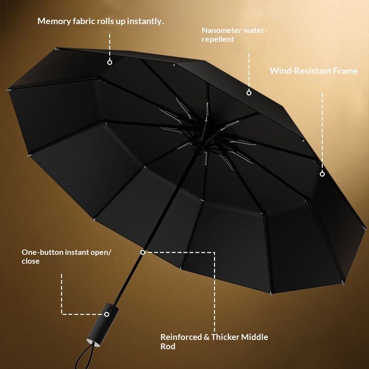 Paraguas de Negocios Plegable Automático de Apertura Rápida con Memoria, Venta al por Mayor Directa de Fabricantes, Impresión Publicitaria