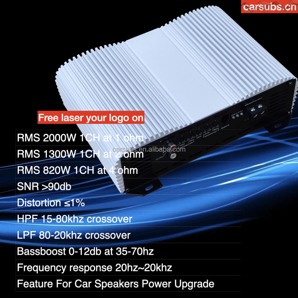 Amplificador de Audio para Auto de Rango Completo Estilo Brasileño, RMS 2000W, Pico de 4000W a 1 Ohm, 1 Canal, Monobloque, Clase D