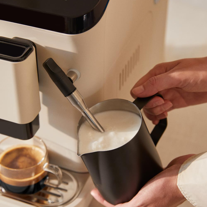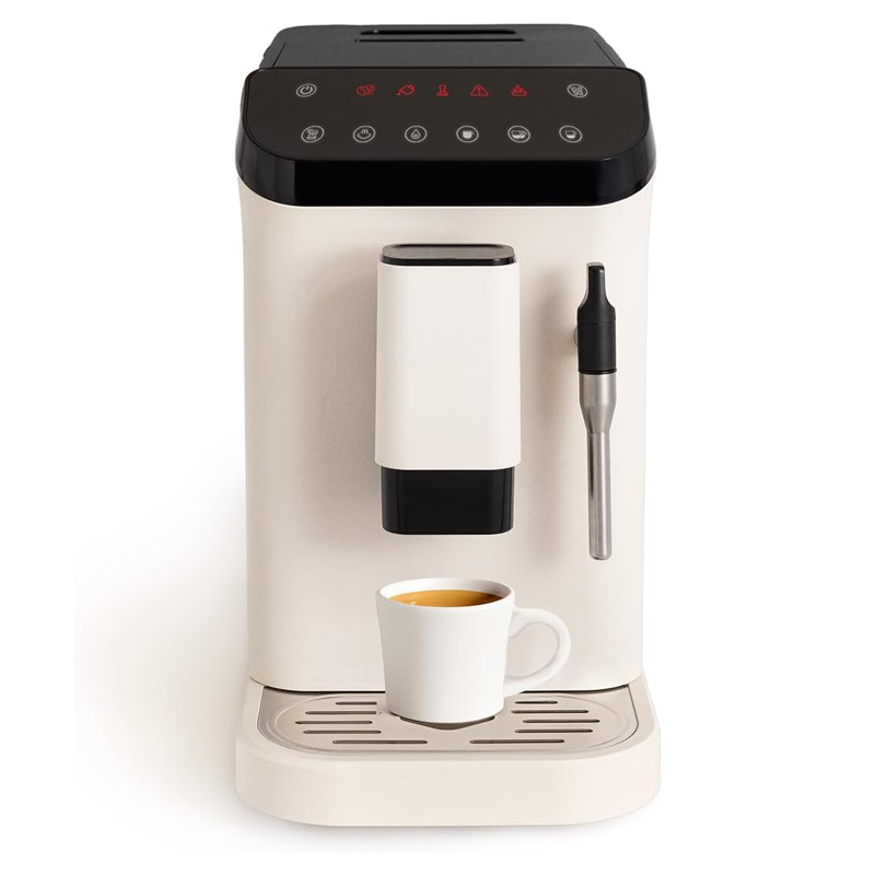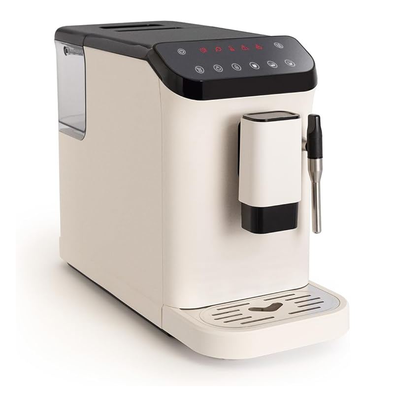 Cafetera Totalmente Automática, Color Blanco Crema, Programable, para Uso Doméstico, con Soporte para Granos, Brazo Vaporizador, Panel de Control Táctil y Autolimpieza