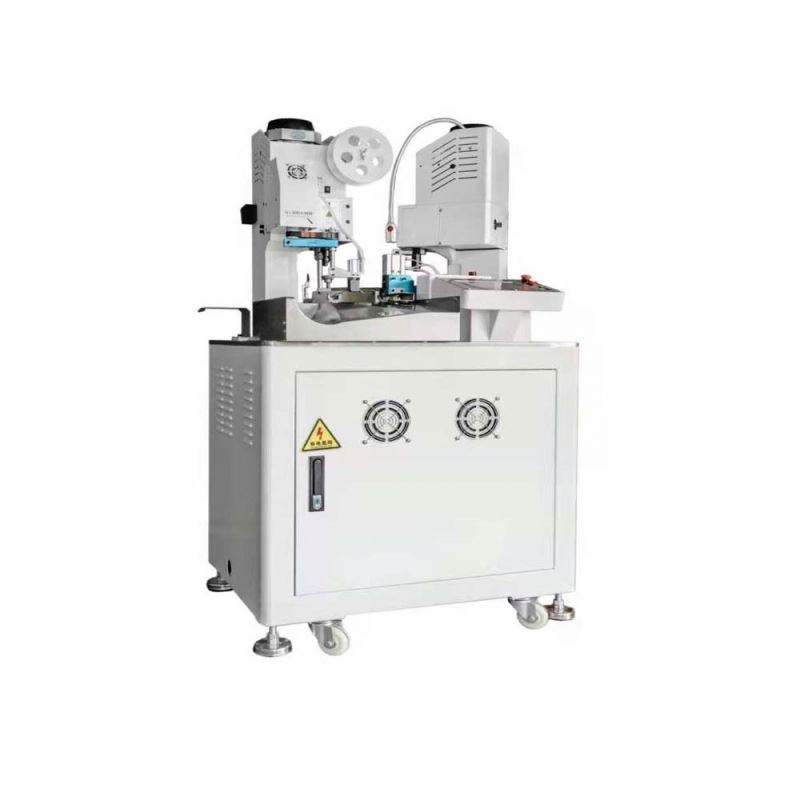 Máquina prensadora de terminales de cable de doble cabezal completamente automática