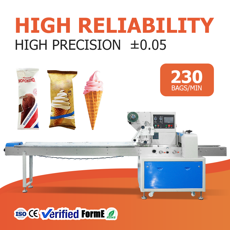 Envolvedora Horizontal de Flujo Continuo Totalmente Automática de Alta Velocidad para Helados, Paletas y Piruletas | Sellador de Bolsas de Plástico para Empaquetado a Granel