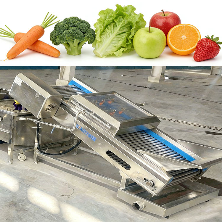Línea de Producción de Limpieza de Frutas y Verduras con Pulverización de Alta Presión Totalmente Automática, Lavadora de Verduras para Cocina Centralizada