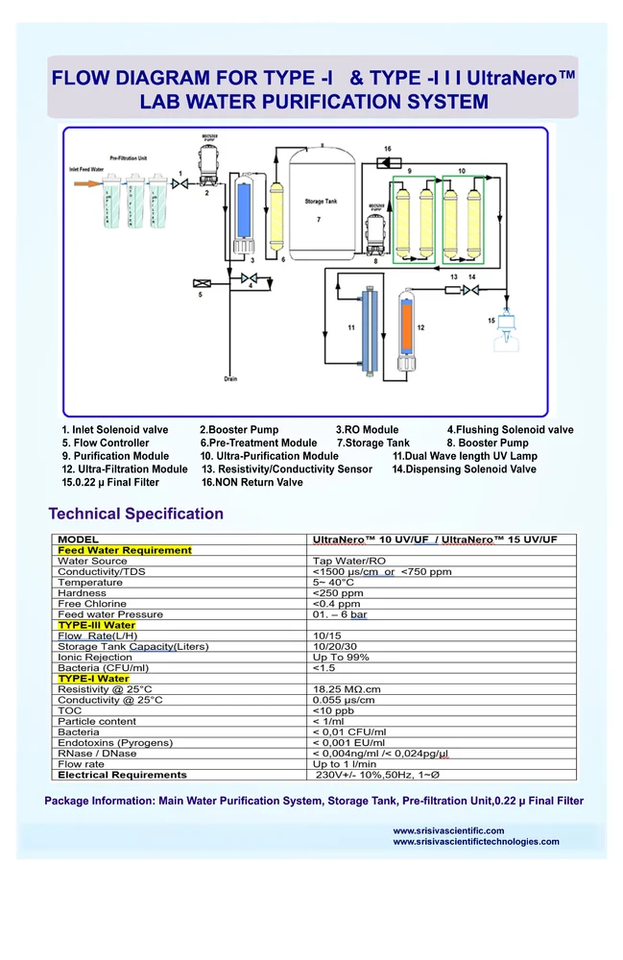 Sistema de Purificación de Agua Ultrapura para Laboratorio, Totalmente Automático, con Pantalla Digital y Aplicaciones de Monitoreo en Tiempo Real