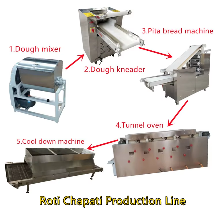 Línea de Producción de Pan Pita Totalmente Automática para Hacer Tortillas, Roti, Chapati, Shawarma Libanés, Máquina para Hacer Pan Árabe de 40 cm