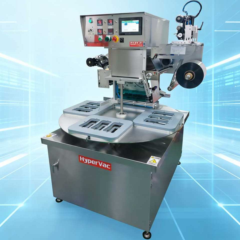Máquina Selladora de Bandejas Rotatorias Totalmente Automática de Acero Inoxidable 304 para Comidas Preparadas, Selladora Industrial para Envasado de Alimentos Frescos de 400 kg