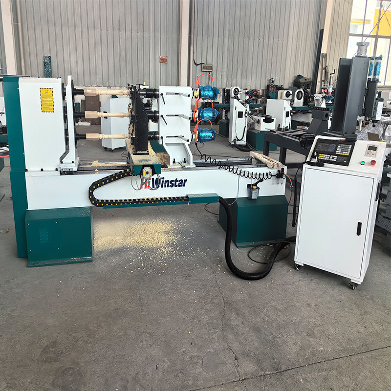 Torno automático para postes de escaleras de madera maciza, equipo automático para torneado de patas de sillas y mesas.