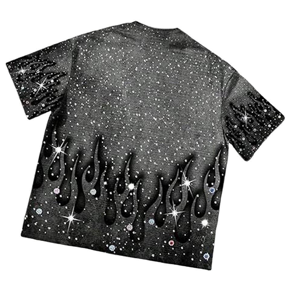 Camiseta Personalizada para Hombre, 100% Algodón, Secado Rápido, Transpirable, con Gráficos de Pedrería, Cuello Redondo, Manga Corta, Estilo Vintage, Ropa Urbana de Verano