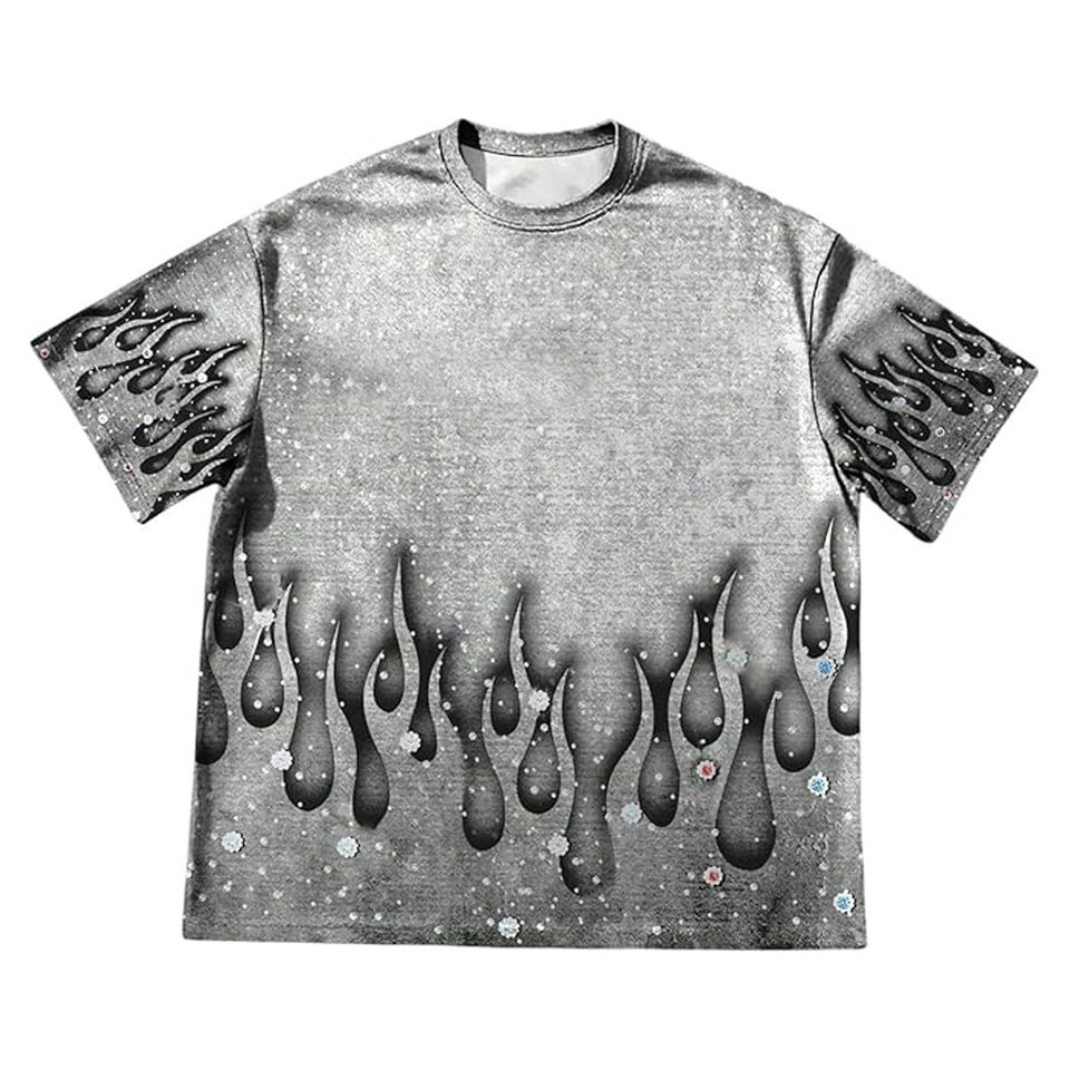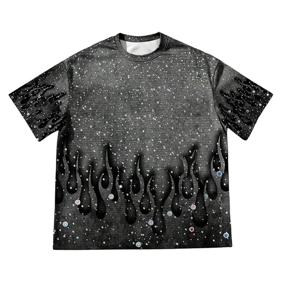Camiseta gráfica con diamantes de imitación para hombre, totalmente personalizada, de manga corta, cuello redondo, estilo vintage, informal, para verano