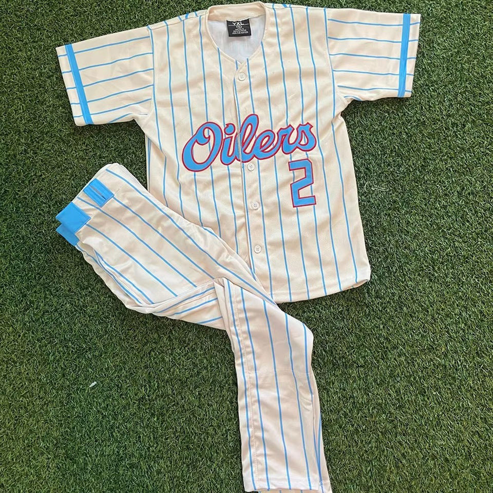 Uniforme de béisbol totalmente personalizable para equipo, sublimado completo, 100% poliéster, estilo de 2 botones, camiseta de béisbol, la mejor tarifa de precio