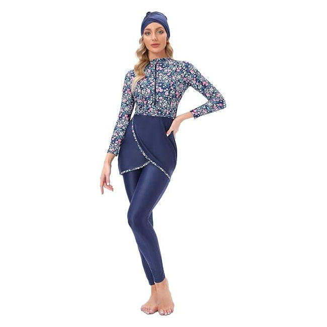 Conjunto de Burkini Modesto para Mujer, Totalmente Personalizable en Color, Corte Alto, Diseño Estampado Doble, Logotipo Frontal, Spandex/Poliéster, Transpirable y de Secado Rápido