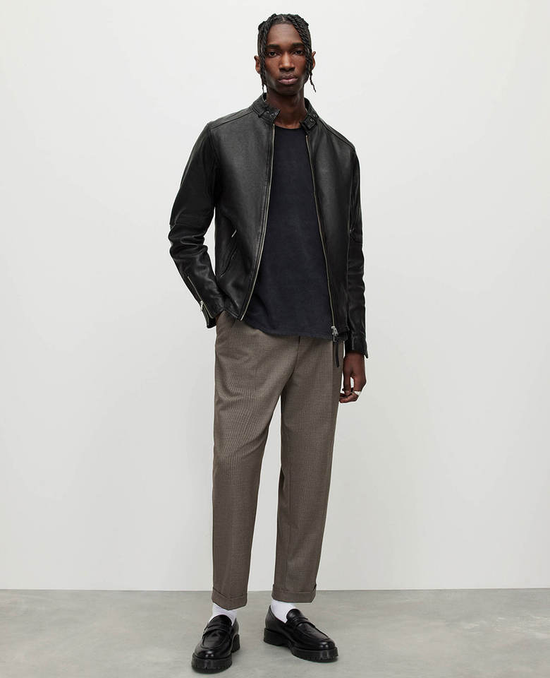 Palabras clave:Chaqueta biker de cuero con cremallera asimétrica