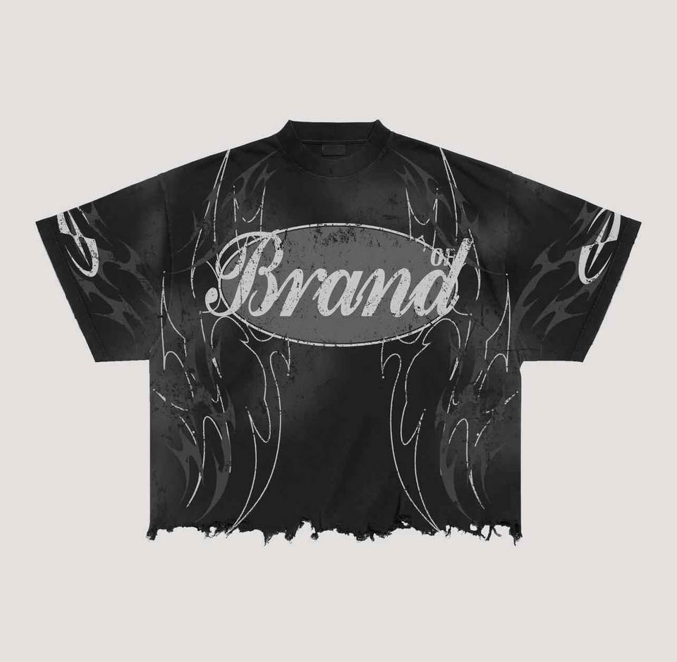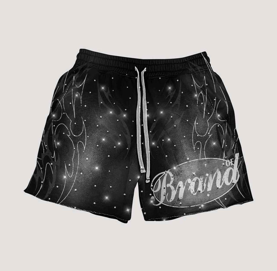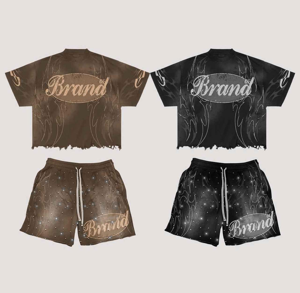 Conjunto de camiseta y pantalones cortos con serigrafía de pedrería efecto desgastado por el sol, totalmente personalizado, de alta calidad, conjunto de pedrería personalizado de moda.