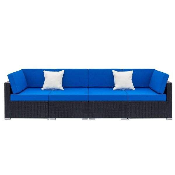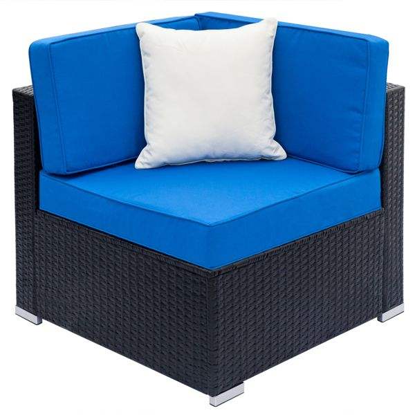 Fully Equipped Black Embossed Woven Rattan Garden Set 2pcs Middle Sofas 4pcs Single Sofas 1pc Coffee Table