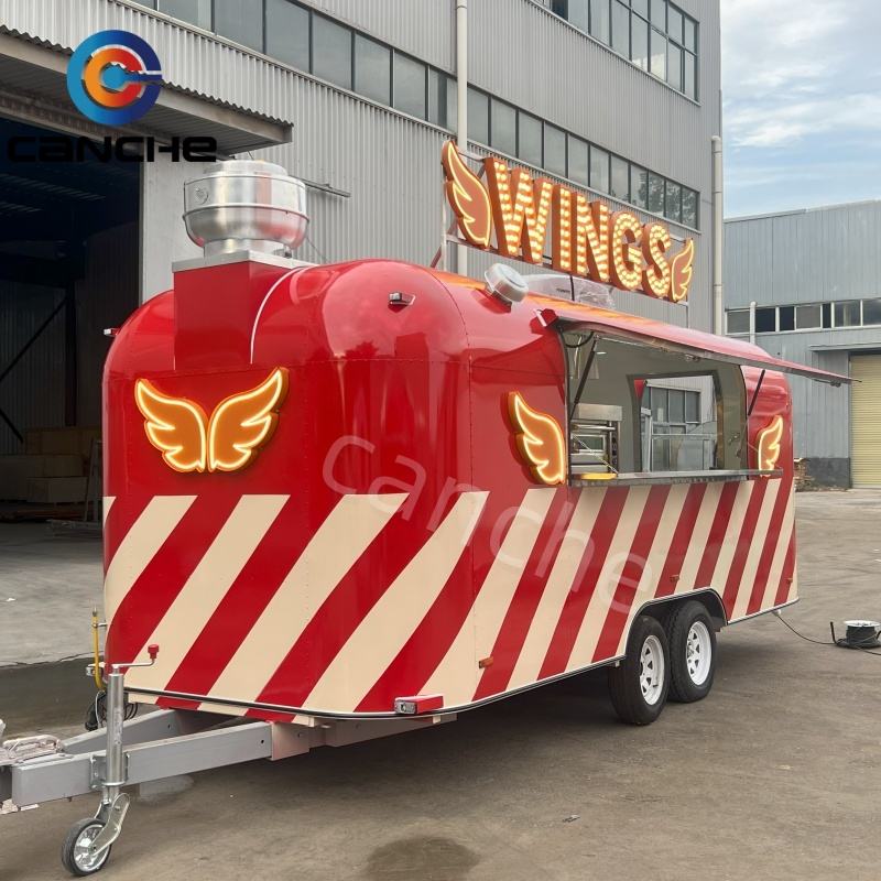 Remolque de Comida Multifuncional Totalmente Equipado de Acero Inoxidable para Venta de Aperitivos y Comida Rápida, Carrito de Catering Comercial Móvil