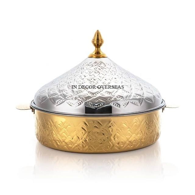 Calentador de alimentos de textura martillada de Metal de alta calidad chapado en oro de alta calidad, utensilios de cocina, cazuela, suministro de utensilios de cocina