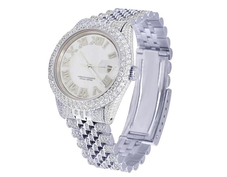 Reloj de Cuarzo con Diamantes, Esfera de Cristal, Estilo Antiguo de Lujo, Joyería de Moda Hip Hop para Hombre